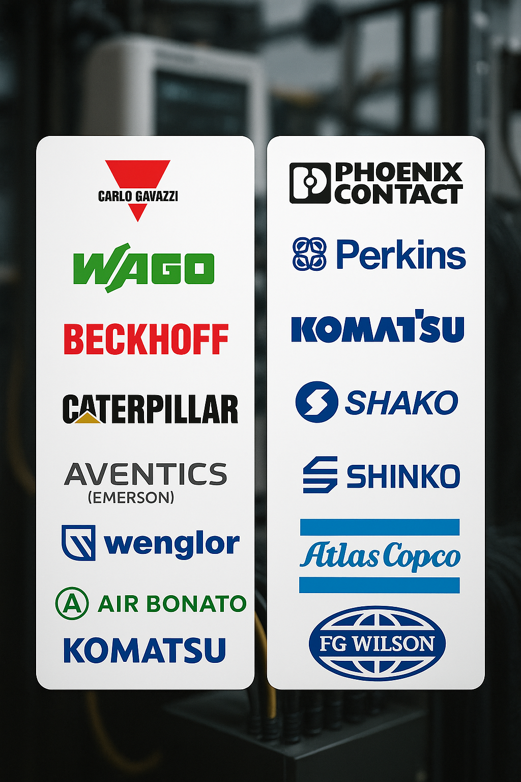 We represent and stock a broad portfolio of internationally recognized brands and selected OEMs, including Siemens, PILZ, Mueller, Pizzato, Weidmüller, SMC, Leuze, Schmersal, Contrinex, Baumer, Eaton, Festo, Omron, Carlo Gavazzi, Phoenix Contact, WAGO, Perkins, Beckhoff, Komatsu, Caterpillar, Shako, Aventics (Emerson), Emerson, Shinko and wenglor.